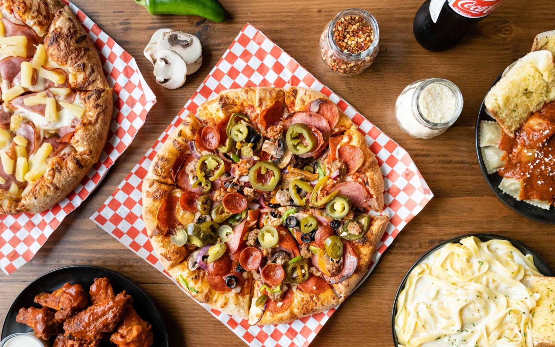 We are known for Dessert, Hawaiian Pizza, Chicken Wings, Italian Food, French Fries, Pepperoni Pizza, BBQ Chicken Pizza, Buffalo Chicken Pizza, American Food, Margherita Pizza, Fries, Pasta, Cheese Pizza, Caesar Salad, Cheeseburger, Calzone, BBQ, Chicken Alfredo, Chicken Tenders, Mozzarella Sticks, Boneless Wings, Burgers, Garlic Knots, Salads, and Wings